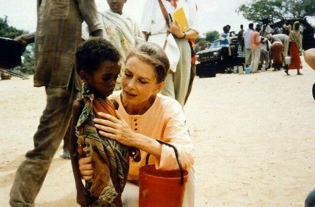 奥黛丽·赫本全身心地投入到这份仅有一美元薪金的工作中,她从不把自己当作大发善心的欧美贵族,她把自己当成受到二战伤害,那个灵魂深处饥饿的小女孩,紧紧地拥抱着贫病无依的孩子们。在1992年底,奥黛丽赫本以重病之躯赴索马里看望因饥饿而面临死亡的儿童,半蹲在地上给孩子们喂饭,那个时候她疼痛难忍,医生说你的癌细胞已经扩散到腹部了,她没有什么反应,只是冷静地说:“哦,倒霉。”