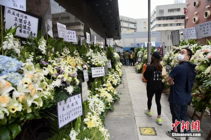 中新社香港3月7日电 (记者 韩星童)香港影星吴孟达葬礼于3月7日下午在红磡世界殡仪馆举行。吴孟达生前的最佳拍档周星驰,以及刘德华等演艺圈中好友均送来花圈并到场致意。