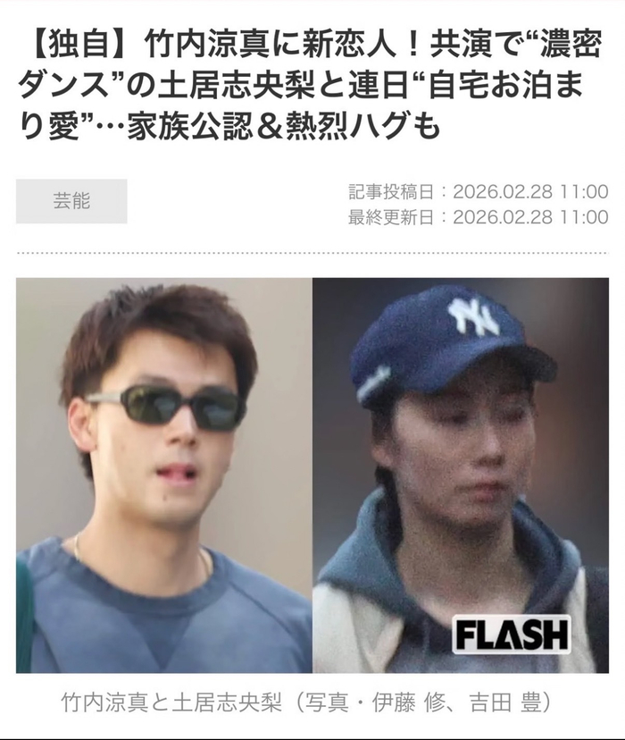 FLASH独家:竹内凉真迎来新恋情!与合作『十项舞蹈』中上演“亲密共舞”的土居志央梨连日同居,获家人认可,甜蜜相拥羡煞旁人!