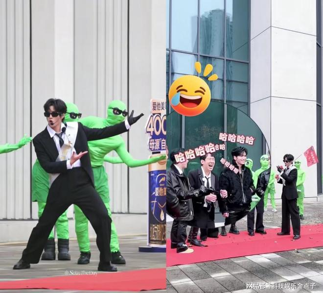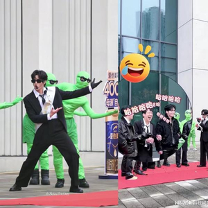 事实再一次证明AI真的战胜不了人类,一百个AI烧干CPU都想不出来这种欢迎仪式吧!我不说这是欢迎仪式,不少人得以为这是什么抽象MV拍摄现场呢。黑色西装、黑色墨镜,装备上耳麦和绶带的时代少年团-刘耀文就这样一本正经地在五位哥哥们面前跳上车摇欢迎哥哥们来到重庆,后面还有一排绿色“外星人”魔性伴舞,《宇宙闪烁请注意》这是把人干哪来了。