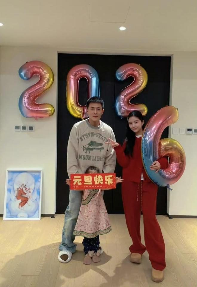 元旦当天,王灿兮就晒出一家三口迎接新年的照片,杜淳罕见露面,与妻子、女儿一起互动。