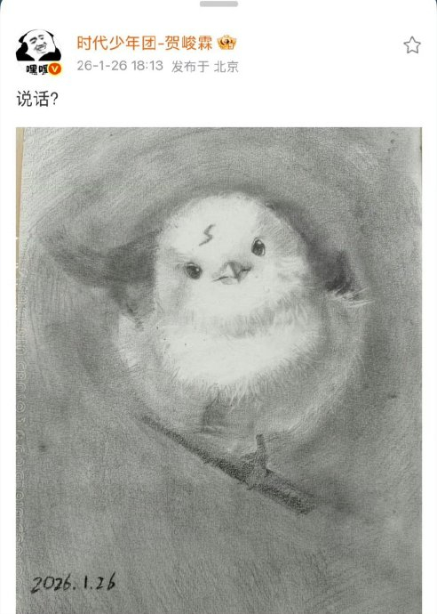 2026年初,贺峻霖凭借抖音创意视频强势建立“抽象派偶像”标签。胡须大叔反差变装、西游赛博朋克等无厘头创作,以荒诞台词和魔性动作引爆全网。他独创的“发一条抽象视频就奖励自己一条帅气视频”模式,通过极致反差强化人设记忆点。更令人惊叹的是绘画领域的蜕变:2025年12月宣布学画,25天后发布的水彩小鸟作品羽毛细腻、形态灵动,从“灵魂画手”逆袭为“行动派美术生”,网友戏称“让美术界颤抖的25天速成神话”。这种用戏谑消解严肃、以行动打破质疑的表达,成为Z世代精神共鸣的新符号。