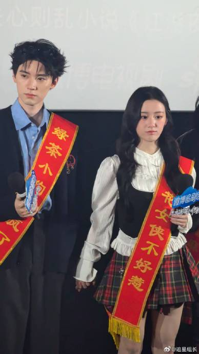 - CP互动延续剧集氛围:与搭档包上恩(饰蔡昭)牵手登场,甜蜜互动延续剧中人设,强化“绿茶小狗×小白花女侠”的CP感。