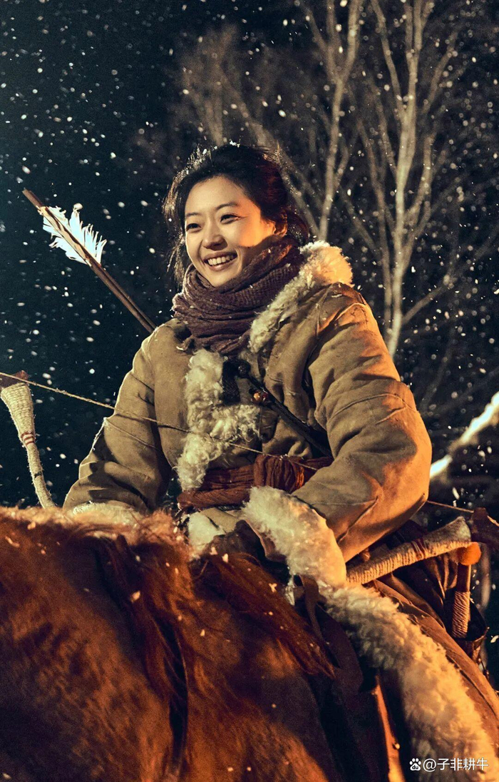 骑马射箭、给小汗王一刀封喉以及策马冲击狼群,都能看到她身上的江湖风气。与感情上的小心试探,又形成了鲜明的对比。