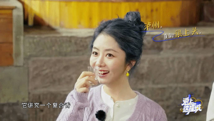 在《爱上这座城》泸州站录制期间,谭松韵体验传统酿酒工艺时,面对现场刚酿出的68度原浆白酒(传统泸州原浆初始度数可达68-72度),她主动凑近闻香后,脱口而出“这就是我常喝的酒”,随即自然地品尝一口。品尝后她立刻惊喜赞叹“太醇了”,并专业描述酒香中包含“粮食香味,像家里蒸饭的味道”,还提到复合香是“曲香、粮香、窖香的融合”。同行嘉宾“水哥”王昱珩被她的爽快惊到,调侃提醒“少喝点”,形成自然有趣的反差互动。