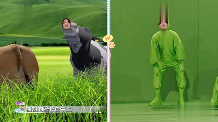 最后的绿屏抠图画面更是好笑,身子没了脸还在,石凯的脸到了牛的头上,高瀚宇和丁程鑫把头放在吴泽林两边(吴泽林:有你们是我的福气!)。