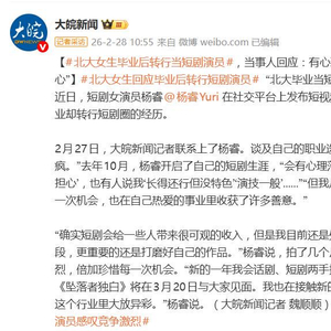 “北大毕业去拍短剧,我是不是疯了?”,据2月28日报道,短剧女演员杨睿在网上的自白,让“名校生就业选择”这个话题又一次被推上风口浪尖。一位北大毕业的文科状元,没有走进体制内或光鲜的写字楼,反而扎进了竞争激烈的短剧片场,这波操作让不少网友直呼“看不懂”。