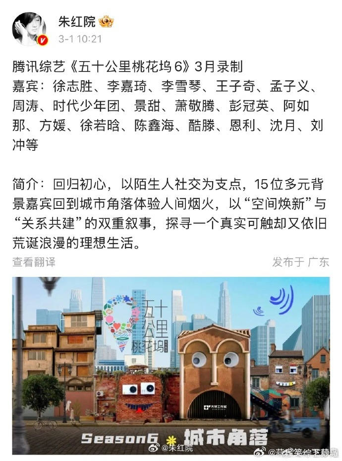 桃花坞6网传嘉宾时代少年团刘冲加盟 蒜鸟笑一下蒜鸟 03.0110:50 关注 #桃花坞6网传嘉宾##时代少年团刘冲桃花坞6# 什么?桃花坞6网传嘉宾里有时代少年团和刘冲?一边是能唱能跳的弟弟们,一边是时尚圈的大佬,这跨界混搭也太有看点了,期待他们在桃花坞的日常互动!