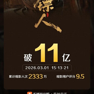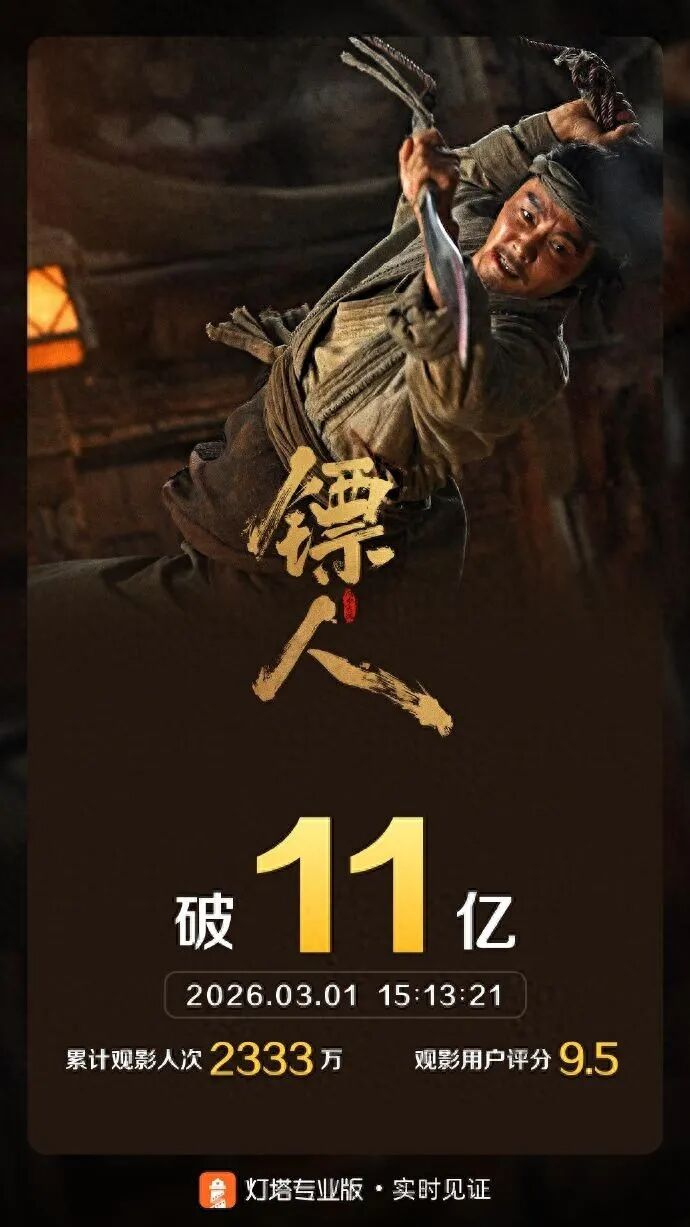 据灯塔专业版实时数据,截至3月1日15时13分,影片《镖人:风起大漠》票房突破11亿。