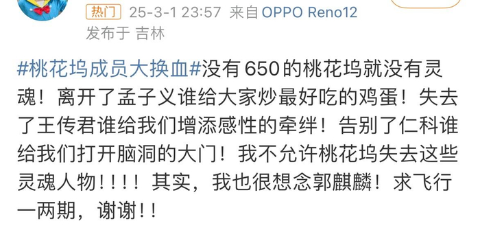 不少网友看了这个爆料表示:这改得太多了,桃花坞肯定是原班人马最好,没有650的话,就失去了前几季的味道。