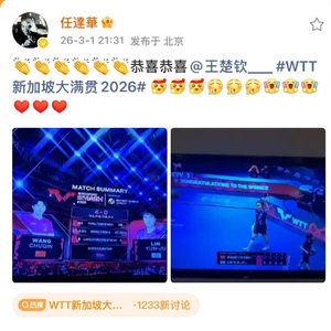 1. 祝贺夺冠:2026年3月1日,王楚钦斩获新加坡大满贯男单冠军后,任达华在微博发文祝贺,配以满屏鼓掌与爱心表情,称其“展现世界第一统治力”。