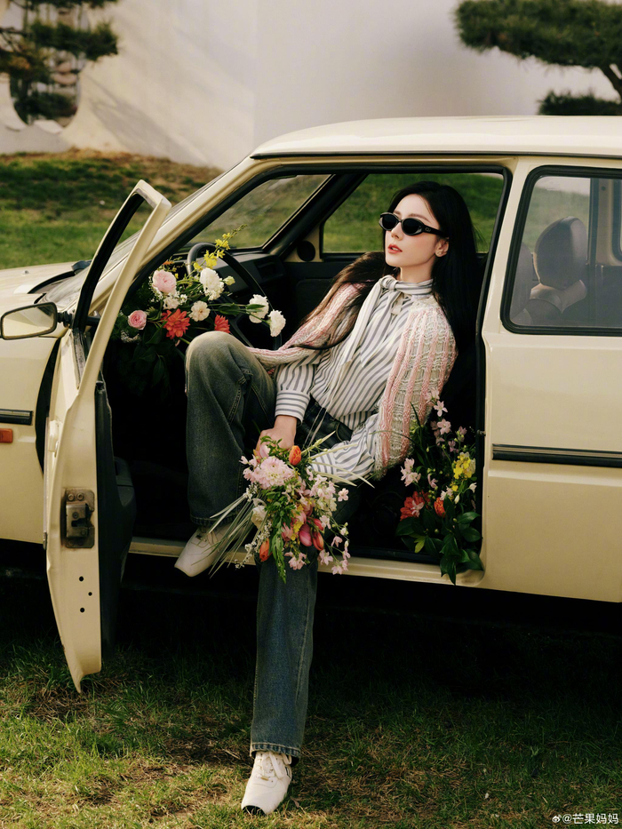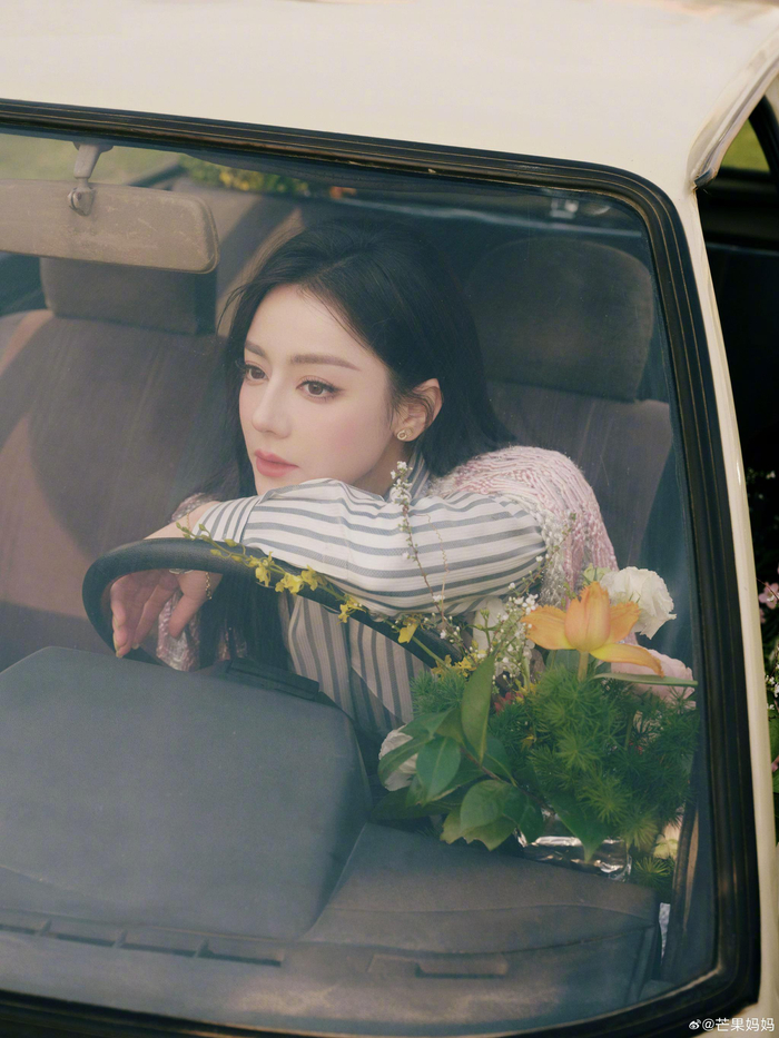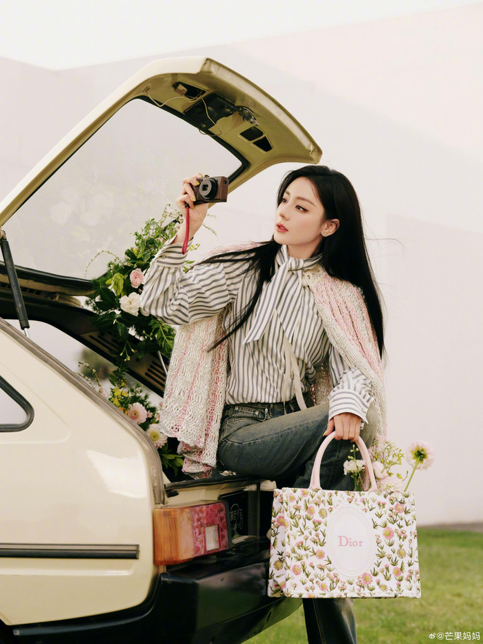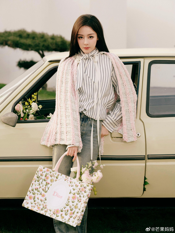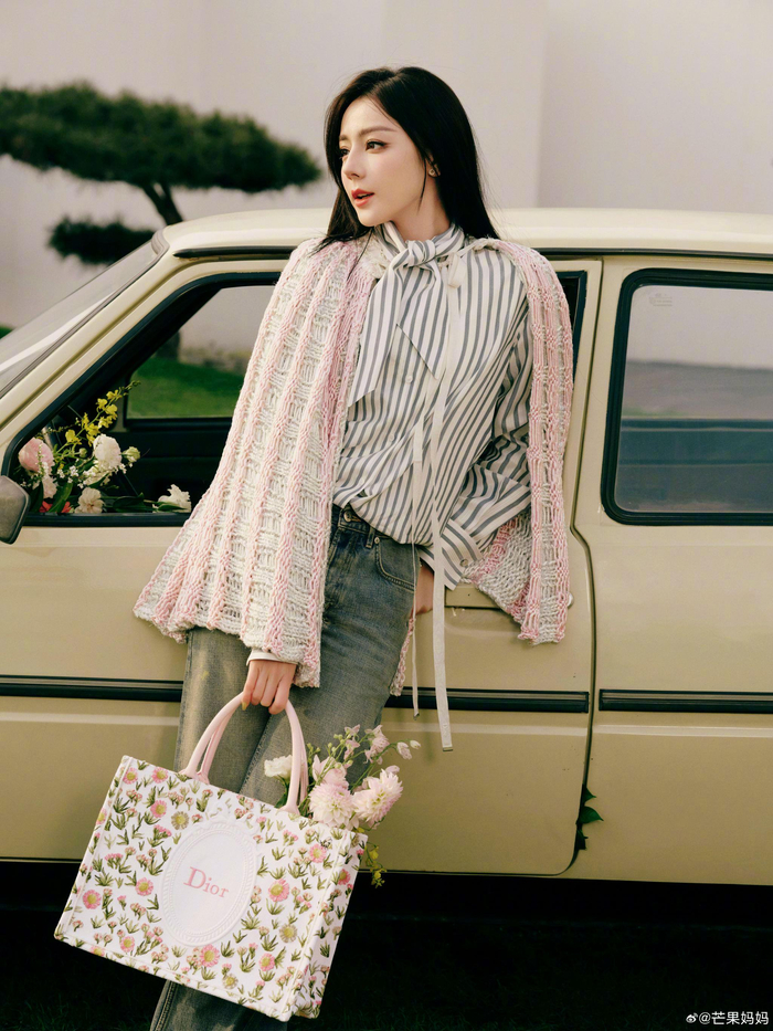迪丽热巴巴黎时装周出发图,好春意盎然的氧气感,期待美神再次闪耀巴黎