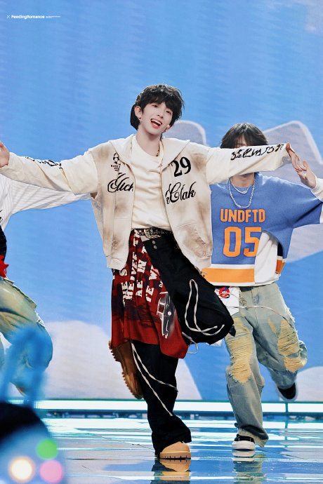精准卡点的力量美学:热气球舞台中,他通过胯部发力的专业舞步(源于Afro舞蹈体系)展现超越年龄的身体控制力,伴舞未完成的低角度动作被他核心力量稳稳支撑,形成鲜明技术反差。