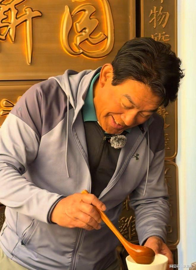 朱时茂身着一身运动装,戴着运动太阳镜,身杆笔挺,哪里看得出来他是一位71岁的老人;尤其那一头黑发浓密的头发,令不少中年男人羡慕。