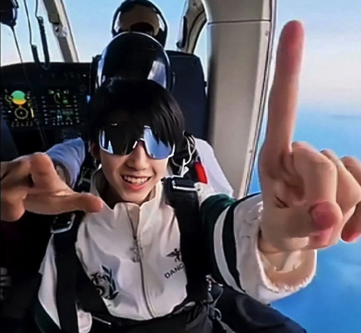 杨博文在2026年3月2日发布的假期vlog中首次挑战跳伞,展现了超越年龄的勇气与行动力。