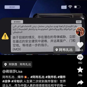 3月1日,陈浩民妻子蒋丽莎在网上发文称,阿联酋阿布扎比发生爆炸,并配发安全警报图片称,人生第二次收到轰炸警报!世界这么大……作为中国人真的很感恩现在和平的每一天,在世界炮火纷飞的战乱地方,才会显得和平的尤为珍贵!咱们自己的祖国有底气,有硬气,更有骨气!强大又热爱和平!每一次人生的经历都让我更深刻体会“刚毅不屈”“人不犯我,我不犯人”的中国精神!