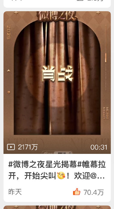 官宣流量垄断:肖战微博之夜官宣播放量2171万,为唯二破千万的艺人(其余均低于百万);