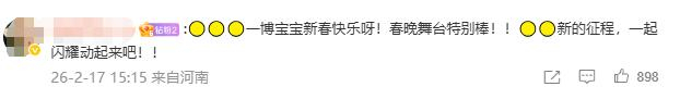有网友留言称,王一博昨晚(2月16日)刚在2026春晚舞台上唱跳,今天就在攀岩拜年,可谓是“马力十足”。