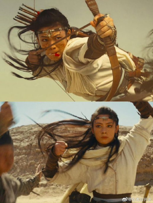 - **阿育娅(陈丽君饰)**的骑射动作融入越剧“翎子功”的颈项发力技巧,张弓搭箭时兼具戏曲韵律与实战张力,塑造出柔中带锋的突厥女战士。