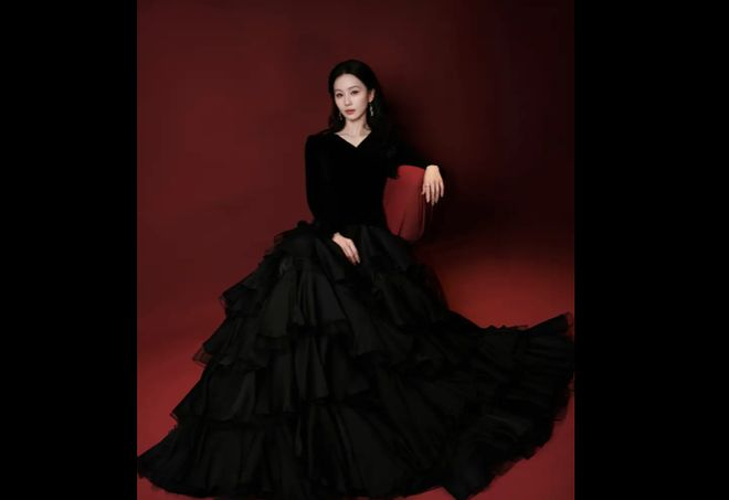 刘诗诗穿黑色V领礼裙,气宇不凡,女王范十足!