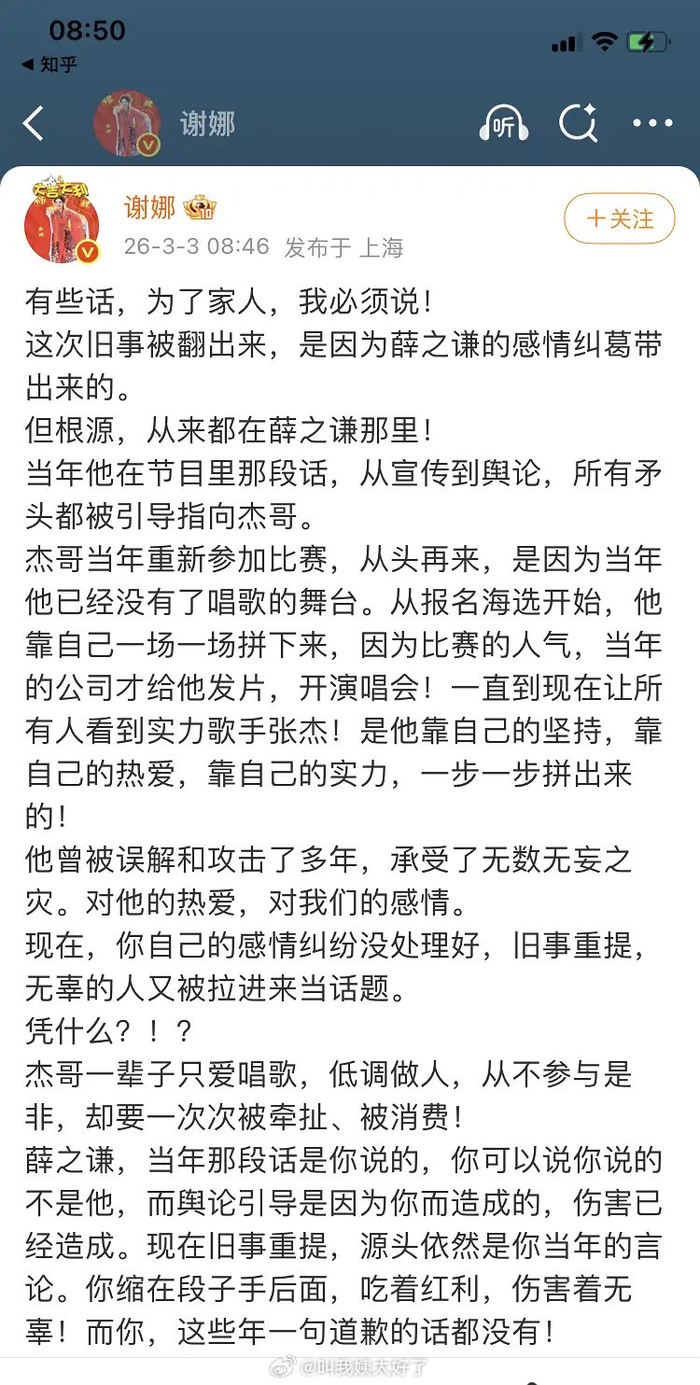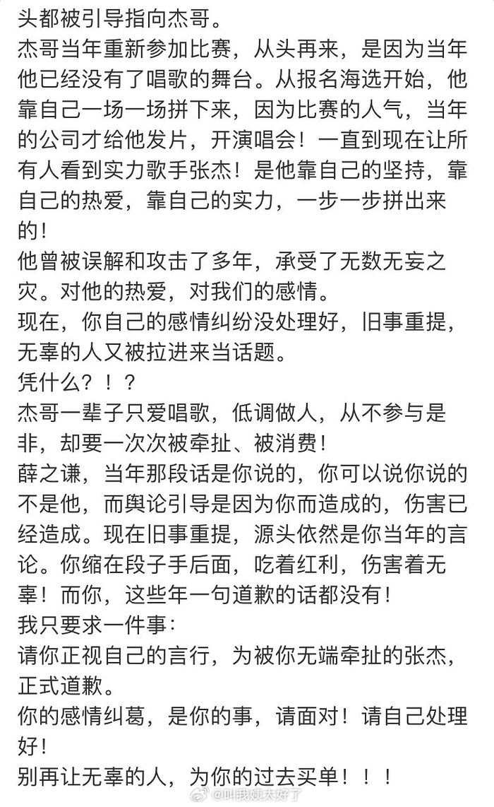 谢娜回应薛之谦内涵张杰事件 叫我姨太好了 优质影视领域创作者 03.0309:25 关注 谢娜还挺刚的。薛之谦之前内涵张杰,之后没有任何表示,现在因为感情问题,内涵张杰的那段话又被翻了出来。谢娜估计也是忍无可忍了…#谢娜喊话薛之谦#