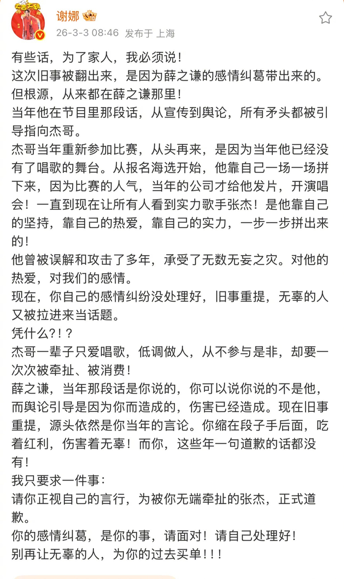 薛之谦张杰什么事?第一次见谢娜这么生气发这样的微博,这是真的忍不了了吧