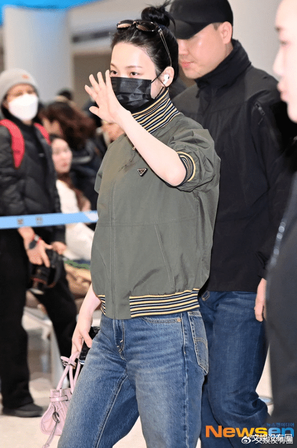 日前,韩国女团 aespa 成员 Karina 于 2 月 28 日下午,通过位于仁川市中区云西洞的仁川国际机场第二航站楼出境。媒体发布的照片中,柳智敏身穿军色夹克,搭配简约牛仔长裤,正低头玩着手机。