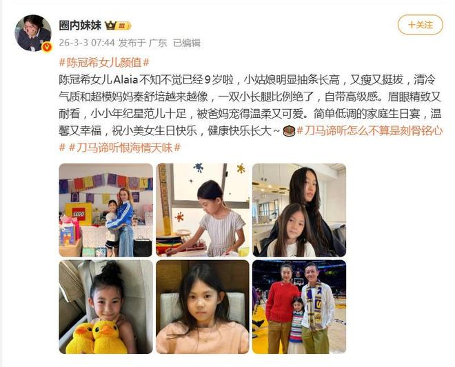 3月3日,陈冠希和秦舒培的女儿Alaia的九岁生日照,又在网络刷了屏。不过,这次大家的焦点不止是“星二代过生日”,更集中在了小姑娘“暴风成长”的身材和那张引发两极评价的脸上。
