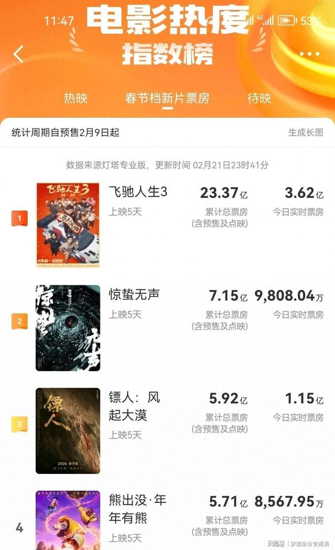 春节档上映第5天,原先不被看好的《镖人:风起大漠》,愣是凭借着实景实拍的真功夫武打场面,获得了观众的一致好评,票房连续三日逆跌,单日票房更是连续两日位居第二,现在总票房也已经爬升到了第三名,终于将“春节档钉子户”《熊出没》甩到了后面。
