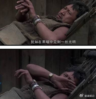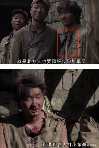 《我的团长我的团》第1集,上图不辣还没有去讨衣服和枪但是身上的血迹已经有了。下图是的是要枪回来,看衣服上的血是新鲜的。
