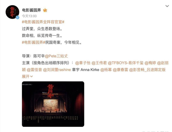 《酱园弄》官宣,章子怡、赵丽颖、杨幂、谢娜等31位主演,评论区更热闹