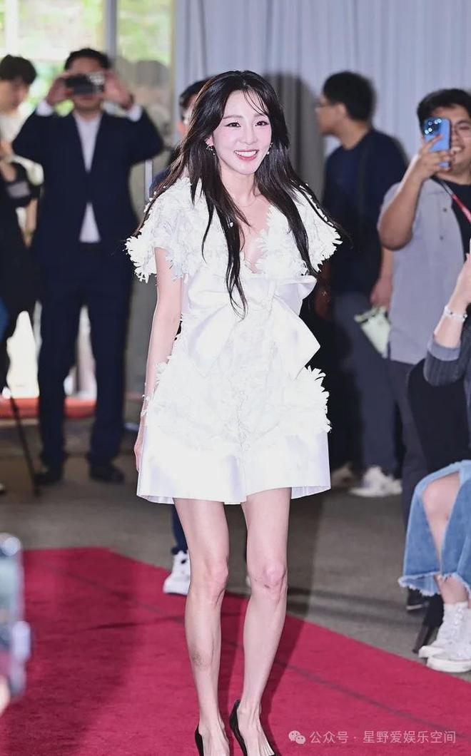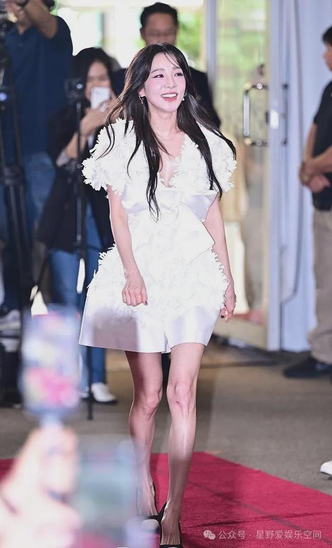 她身着一身白色连衣裙,裙摆是利落干净的裁剪风格,光滑丝绒面再加上装饰在裙身上的天鹅羽毛,以及胸前的大蝴蝶结点缀,整个人宛如从童话世界里走出来的白天鹅,优雅魅力散发的那叫一个大。引得记者和台下观众是阵阵尖叫。关键是体重这么轻,脸却看起来带有肉感,看来朴山多拉这婴儿肥肯定是天生的了!