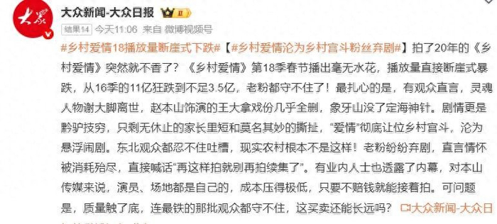 《乡村爱情18》播放量断崖式下跌,粉丝直言“别再拍了”