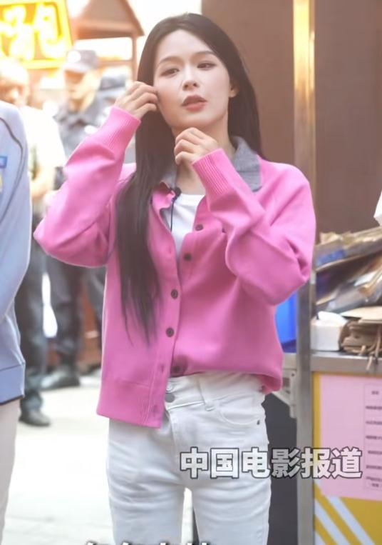 先说余茵,她的身高不高,配上粉色外衣,整个人显得娇小可爱。