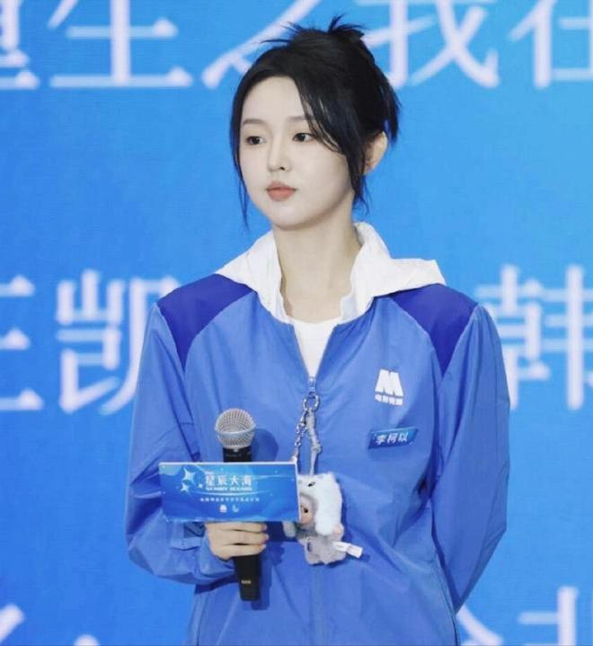 虽然在见面会上,李柯以也是全妆,脸上的“白皙”在灯光下显得有点“过白”了。