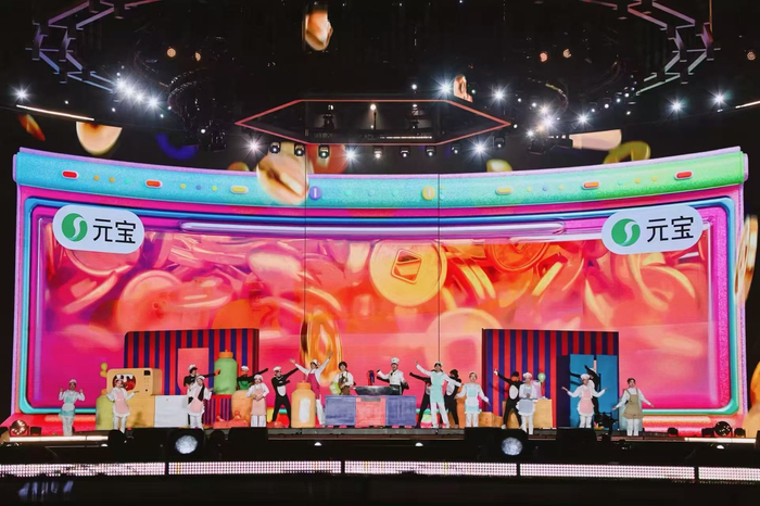 科技让舞台想象力无限延伸。周深带来的XR秀《梦见你》,化身提灯寻梦人的他将带观众步入AR与XR技术构建的“时间的河”;檀健次的《Proof》以硬核科技力量呈现震撼视觉;颜安、黄誉博化身主理人带来《吸引力法则》,在4M升降屏与视觉弹幕之下,现场“烹饪”金币、offer等具象化好运,打造魔幻现实主义的欢乐厨房;徐浩伦、谭湘文用AI新视角打开脱口秀,值得期待。