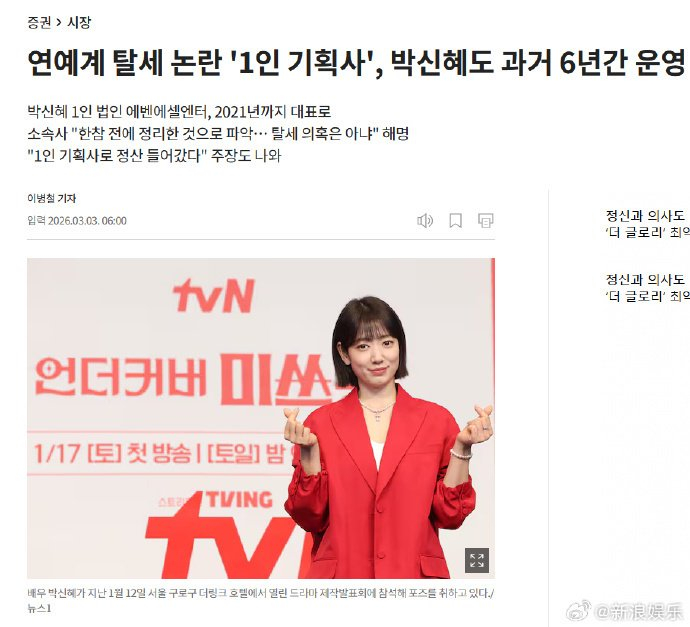 近期,韩国国税厅已将艺人 “一人企划社” 避税行为列为重点稽查对象,韩国国会也正在研讨针对性的法规条款,朴信惠成为继车银优、金宣虎之后,第三位卷入此类逃税争议的韩国顶流艺人。