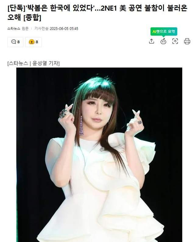 韩国女团2NE1最近在美国洛杉矶“Head In The Clouds LA 2025”音乐节上以三人体制亮相,唯独朴春缺席,引发粉丝疯狂猜测:“2NE1要变三人团了?”、“朴春是不是又出状况了?”