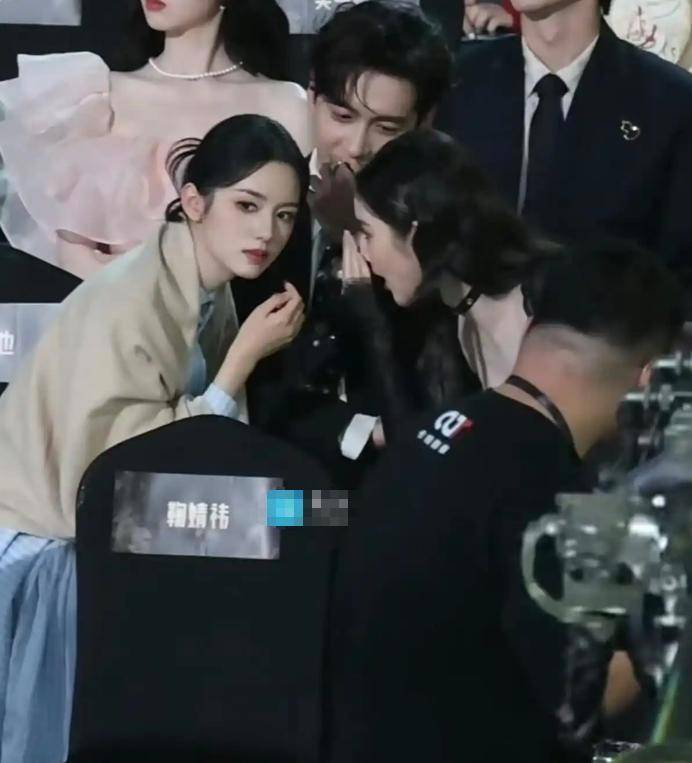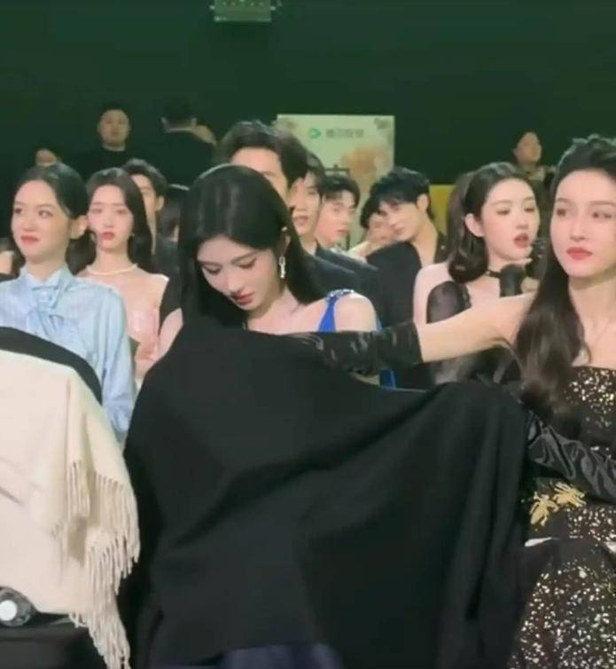 现场的视频里还能看到宋祖儿也加入了遮掩的行列,三个人用披肩盖腿、低头窃窃私语的动作巧妙地掩饰着操作。这一连串的动作被网友戏谑成“女明星秘密会晤现场”。