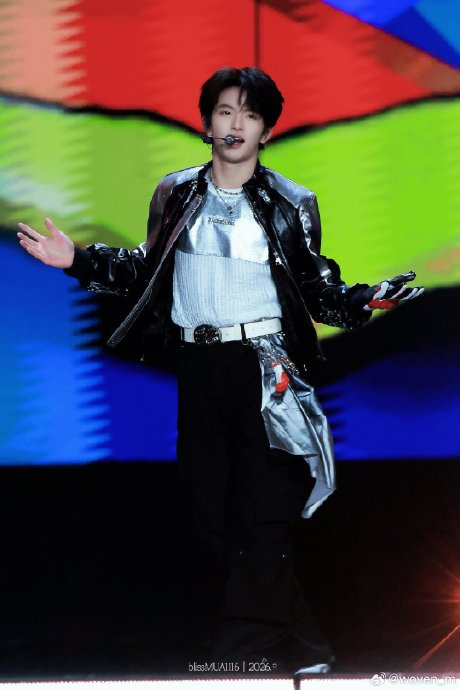 舞台置身山西长治非遗灯会的实景中,演员身着融合国风元素的现代演出服(如穆祉丞的黑皮衣配绿色耳返),手持糖画灯笼穿梭于百家姓灯廊。表演动线结合猜灯谜等民俗环节,使观众从“观看者”变为“游园参与者”,实现从表演到体验的范式转换。