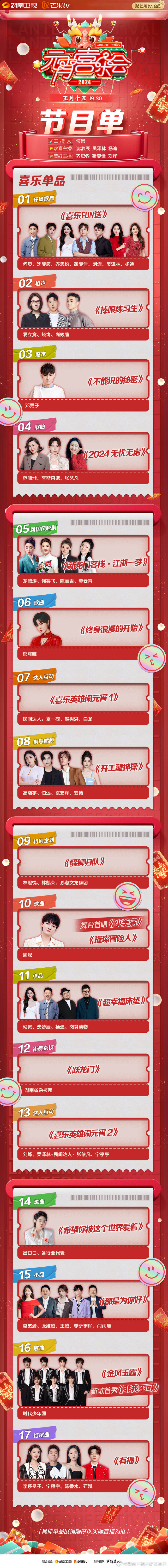 2024湖南卫视元宵喜乐会节目单发布,时代少年团新歌首秀