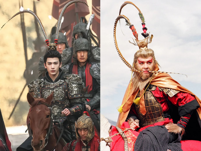 张凌赫深度参与造型落地:调整雉翎弧度使其向后延伸避免分散感,优化盔甲与翎羽的材质碰撞,并通过动态测试验证骑马戏份的飘逸效果。这种从概念到执行的全流程把控,使雉翎既保留戏曲美学精髓,又契合现代影视动态需求。