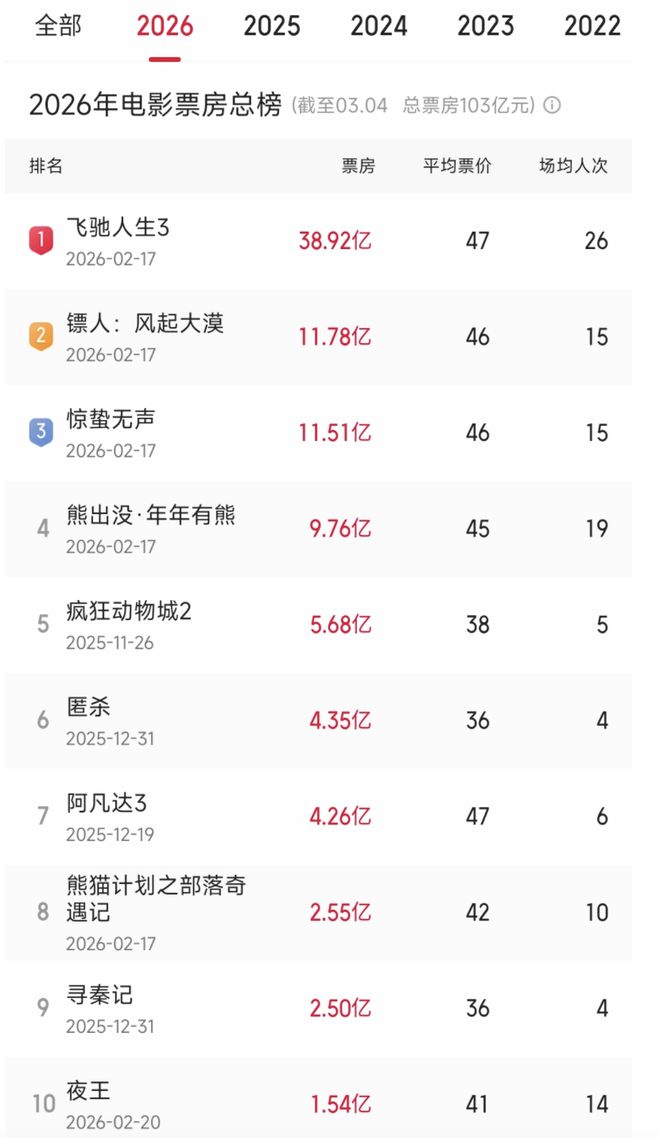 再看其他,连《镖人》都打不过,更别提《飞3》了。