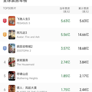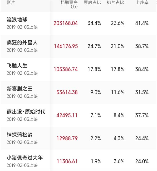 而是目前的全球票房榜其实就是内地春节档的厮杀,因为外国不过春节,二月份对他们来说是冷门档期。