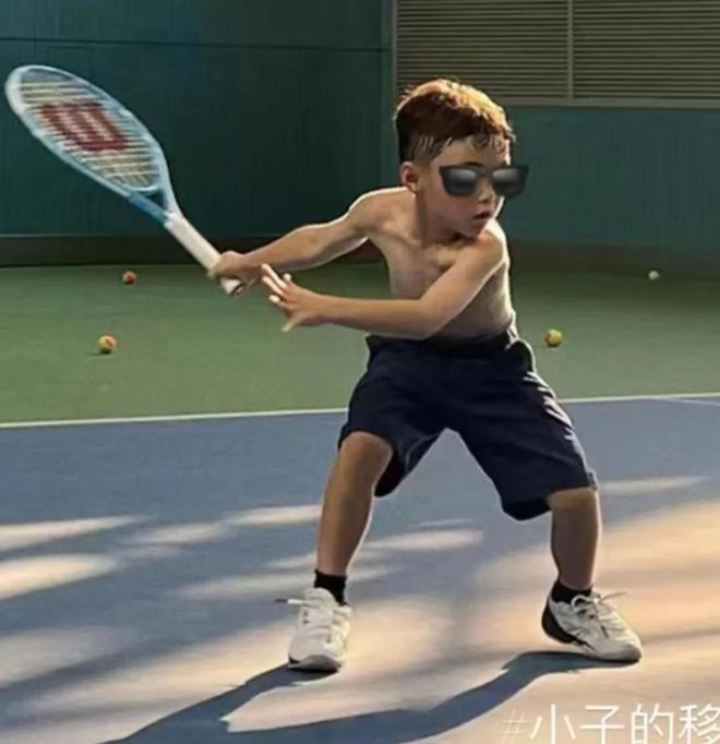 罗密欧不管是神态还是眉形鼻子,都和周杰伦如同复制粘贴,孩子打网球热得头发都湿了,皮肤也晒了好几度,不过整体特别有健康感,精瘦的体型有种很强的力量感,小大人的既视感。