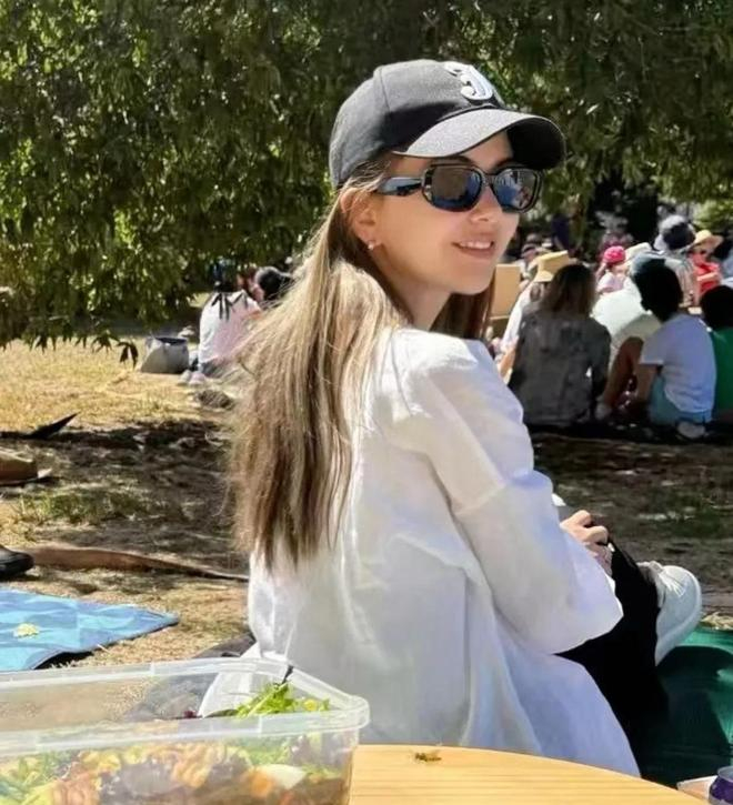 不工作时候的昆凌就和普通妈妈们一样,素颜出门打扮得非常低调,戴上墨镜和帽子根本不会有人认出来,周围的人都当她是年轻的带娃妈妈。昆凌身后的桌子上放着健康的蔬菜沙拉当午餐,在野外晒太阳呼吸新鲜空气非常惬意。