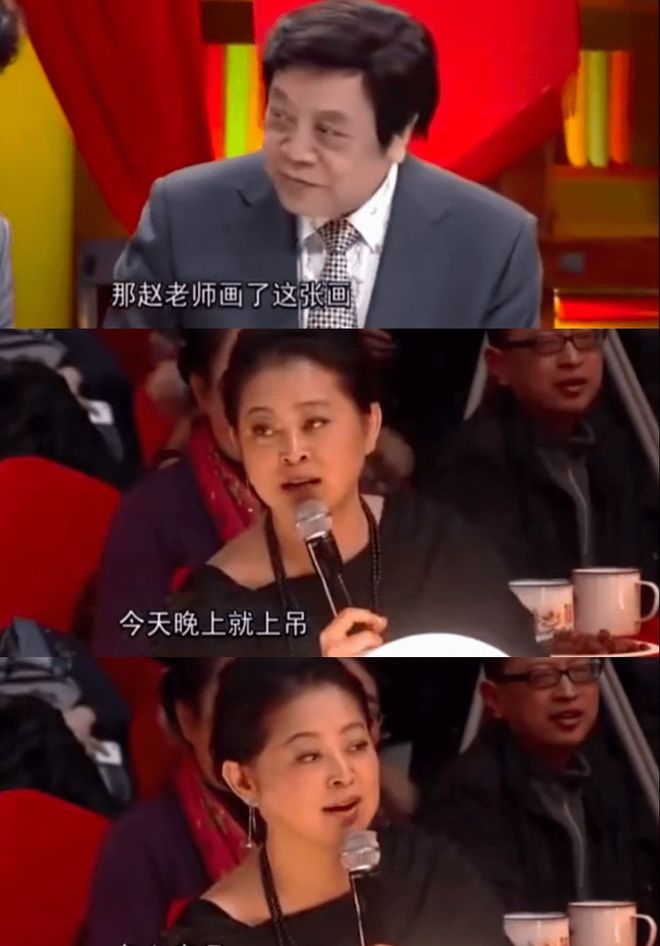 倪萍:赵老师画了这张画,今天晚上就得上吊,你知道吧,他没画过这么大的画白送给人家,多心疼呀,你要知道画是按尺买的。