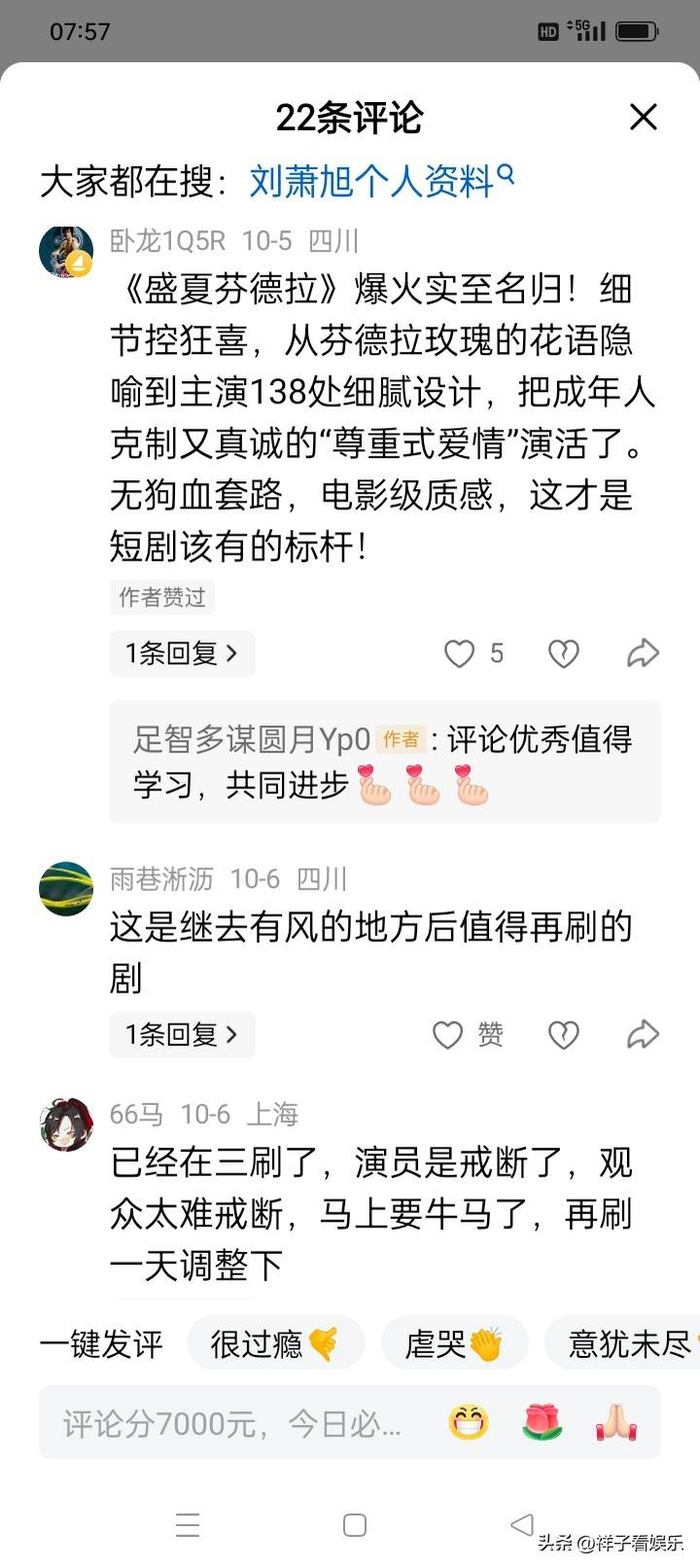 《盛夏芬德拉》上线后,迅速成为社交平台热议话题。网友不仅讨论剧情,更热衷于分析“电影级画面如何实现”“190cm男主的选角逻辑”。这种“深度参与感”,让短剧从“消遣工具”升级为“社交货币”。