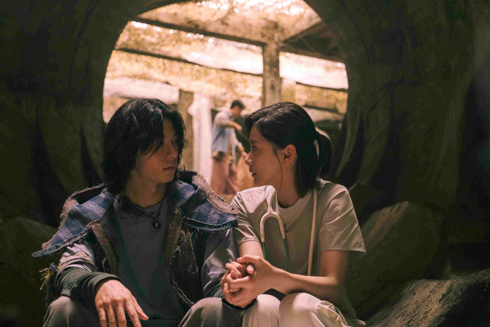 《他年她日》故事描述大地震將世界一分為二,矗立於海中央的「重力牆」扭曲了兩邊的時間與重力,在「優日區」的一天,是「長年區」的一年,為了營造出重力失衡、時間錯位的奇幻世界,製作團隊耗費近一年後期製作逼真震撼的CG特效視覺,刻劃出絢爛壯闊的浩瀚場面。