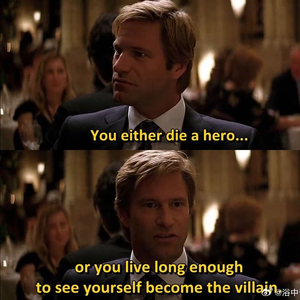 TIL:今天才知道,《黑暗骑士》里的哈维·邓特的名台词「你要么死得像个英雄,要么活得够久知道你变成恶人」是弟弟乔纳森·诺兰写的。哥哥克里斯托弗·诺兰最开始都不太理解这句台词想表达什么,但觉得放在这里还行就保留了。